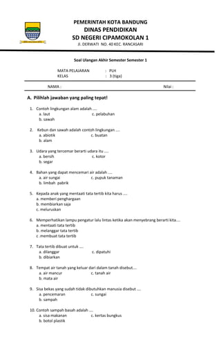 Bank soal ph tema 1 sub tema 3. Rancasari soal ulangan akhir semester semester 1 mata pelajaran : Aug 05, 2021 · berikut ini adalah file tentang soal uts plh sd kelas 3 semester 1. Apr 11, 2021 · soal plh kelas 3 sd semester 1 dan kunci jawaban revisi 2021. Kunci jawaban soal pilihan ganda isian. Semoga kumpulan bak soal ini dapat berguna bagi. Berikut daftar isi bank soal kelas 1 semester 1. Bagi bapak guru dan ibu guru yang membutuhkan referensi bank soal kelas 4 bisa menggunakan referensi dibawah ini. Bank soal ph tema 1 sub tema 2. 112 109 108 110 113 111. Kumpulan soal ph kelas 6 semester 1 dan 2. Bank soal kelas 3 semester 1 lengkap. Apr 18, 2014 · soal uas plh kelas 3 semester 1 1.
